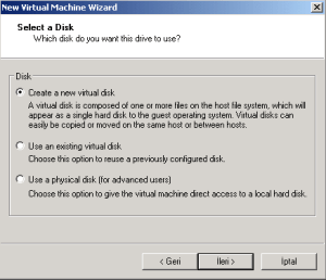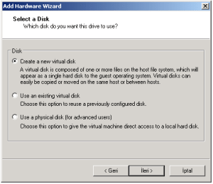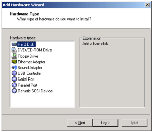 20-Yeni disk oluşturmak için Hard Disk’ i seçip ileri butonunu tıkladık.