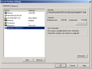 scsi1:2.fileName = “D:\My Virtual Machines\RAC\rac10g\share\datadisk3.vmdk”