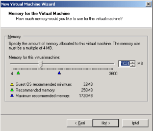 8-VMware Server uygulamasını kurduğum sistemim ‘Windows XP Version 2002 Servise Pack 3’ ve sistemimin belleği 2 GB boyutunda olduğundan kuracağım sanal linux makinelerim için 1GB boyutunda bellek alanı oluşturabilirim, Sanal linux makinelerinde Oracle Database ve Oracle Clusterware uygulamalarının bellek ihtiyaçları için de rahat çalışma ortamı imkanı açısından 1GB bellek alanı uygun olacaktır.