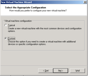 1-‘New Virtual Machine’ ikonu tıklanıp Wizard ile kurulum