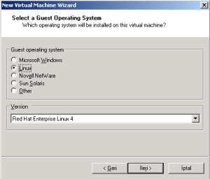 ve kuracağımız linux sürümü Enterprise Linux 4 update 5