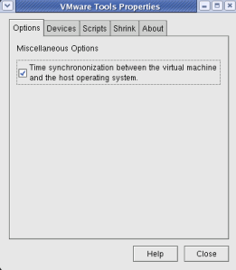 62-Sanal makinemizden Logo ut olup tekrar root ile sistemimizi açtık ve ‘Vmware Tools Properties’ penceresinin açılıp ‘Time synchronization between the virtual machine and the host operating system’ tikinin işaretli olup olmadığının kontrolünü yaptık, işaretli olması gerekiyor. Bu seçeneğin işaretli olması ‘Virtual Machine configuration file’ ın ‘tools.syncTime = “TRUE” satırını eklemesi demektir.