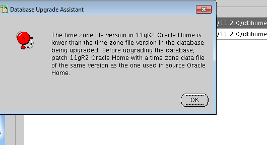 11.2.0.3’ten 11.2.0.4’e upgrade ederken aşağıdaki hatayı verdi çünkü 11.2.0.3 db’de timezone versiyonu 28 idi (yaz saati patch geçişi sonrası) 11.2.0.4 yeni Oracle home’unda ise timezone versiyonu default kurulumda 14 olduğundan dolayı.