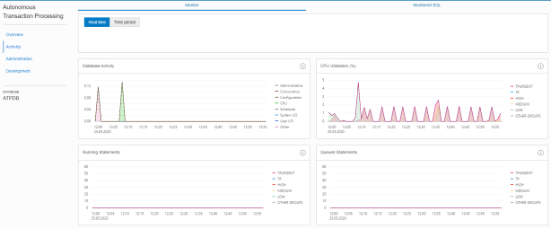 ATPDB database’inin konsolunda “Activity” kısmından tüm db hareketlerini anlık olarak monitor edebiliyorum.
