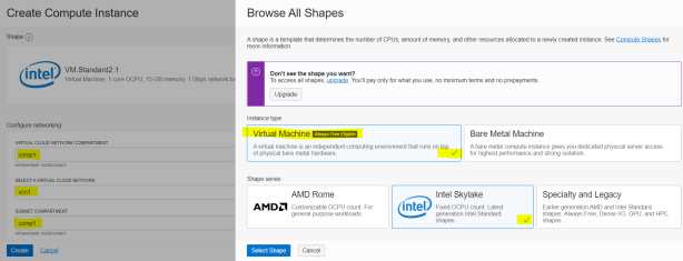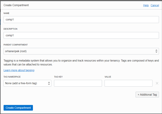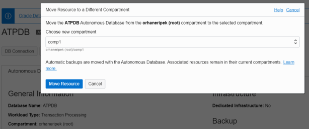 Let’s see how we can easily create Compartment, Virtual Cloud Network (VCN) and Compute VM. All this will only take 15 minutes maximum 🙂 My VCN and Compute VM are in the same compartment (comp1). I also moved my ATPDB db to this new created compartment.