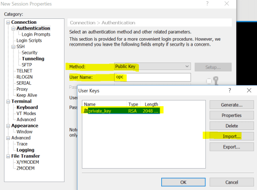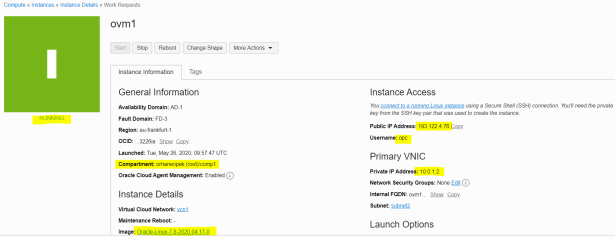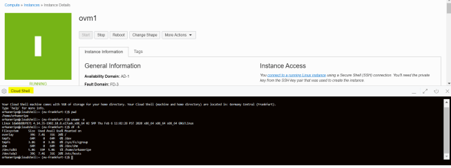 We can connect to our VM instance by choosing our public IP and private key with “opc” user from putty or any ssh client tools.