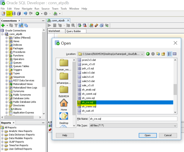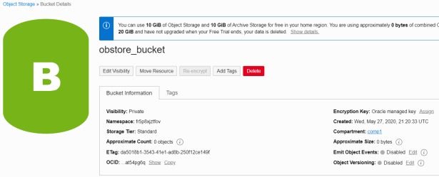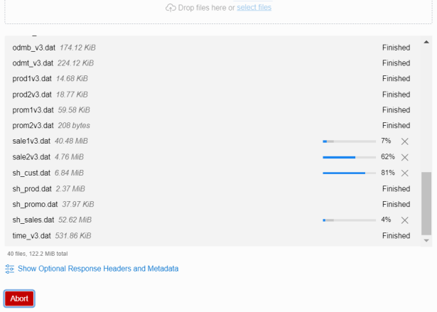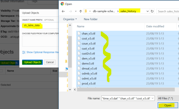 For example, we load the data files of SH schema into our bucket in Object Storage.