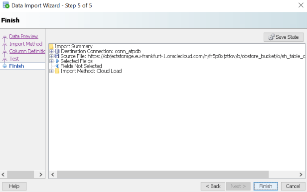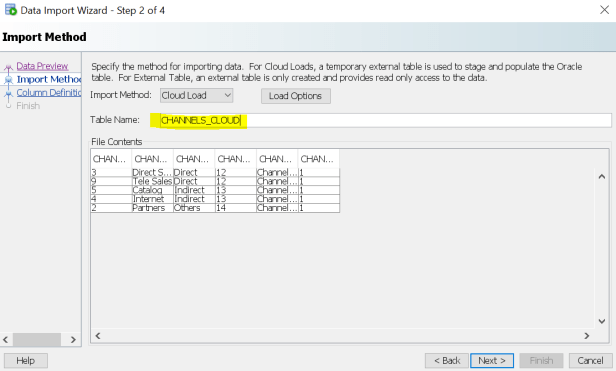 We can load the data in Object Storage into a copy table using Sql Developer’s Data Import Wizard.