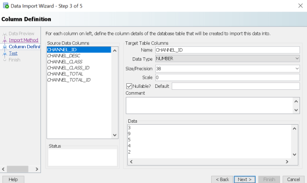 Loading Data Using the Data Import Wizard in SQL Developer: